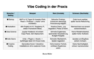 Für Startups, Forschung, Kunst, Gaming und Prototyping ist Vibe Coding extrem wertvoll – weil es Geschwindigkeit, Flexibilität und kreative Freiheit ermöglicht.